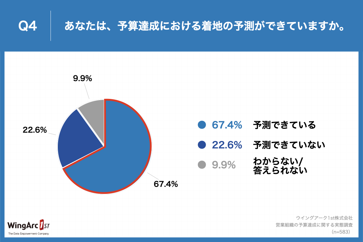 4.予算達成における着地予測、67.4%が「できている」と回答