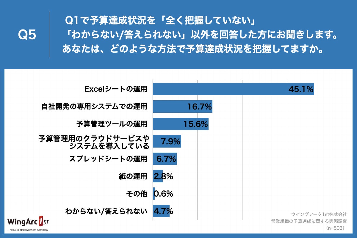 5.予算達成状況の把握方法、「Excelシート」が45.1%で最多