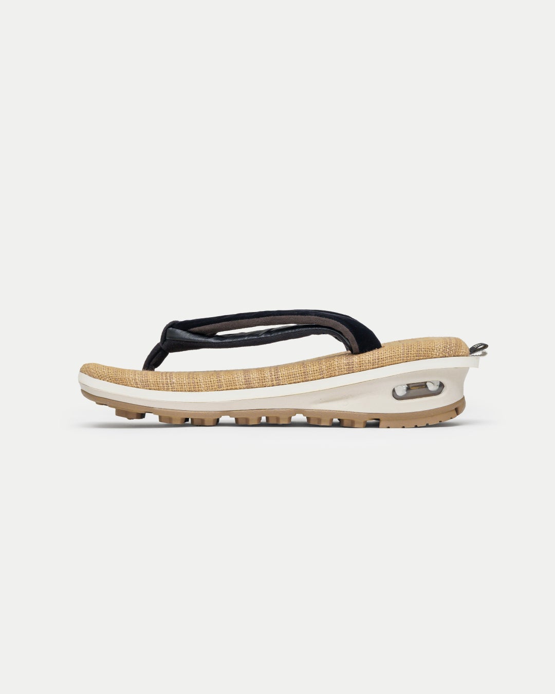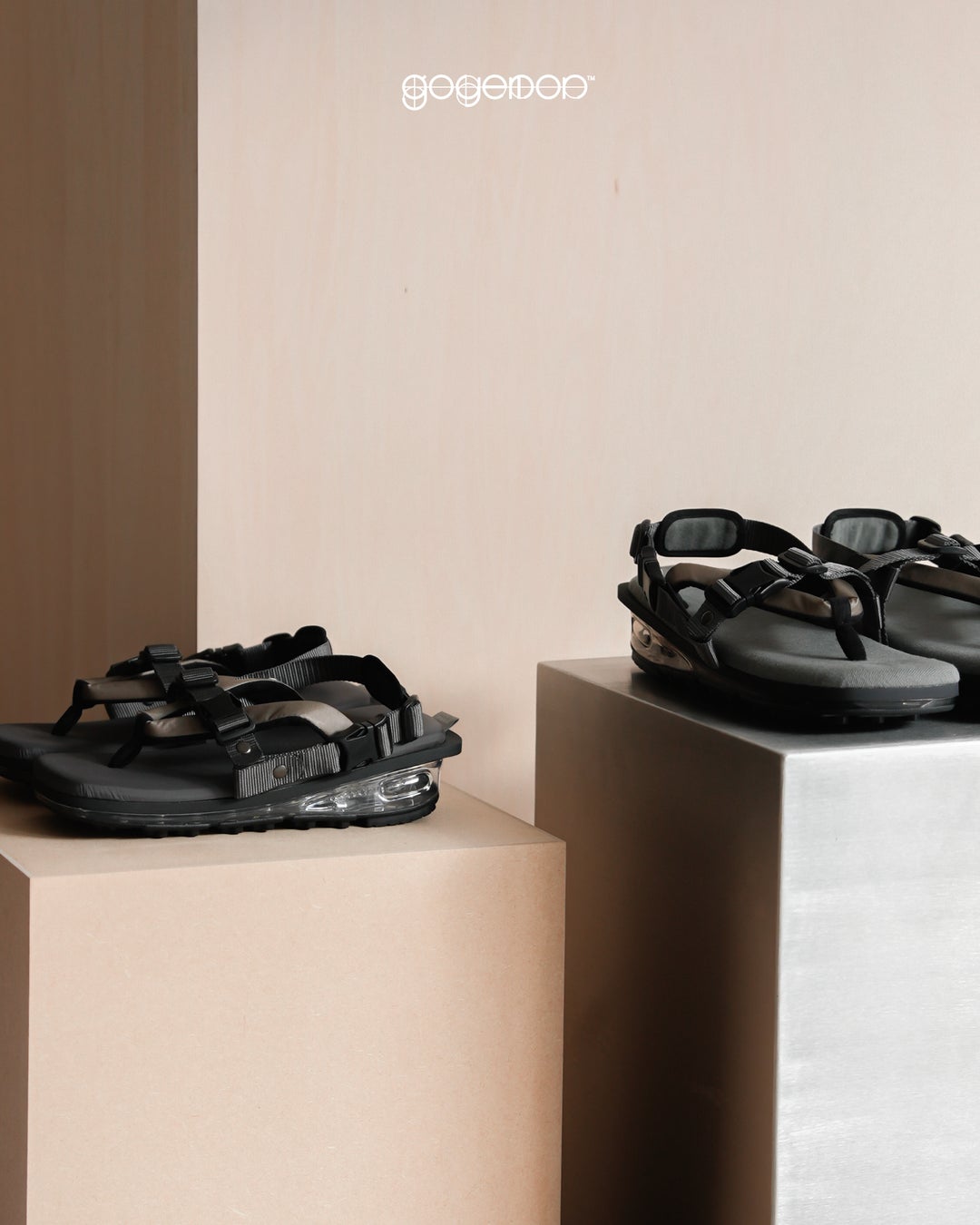 「unda HOVER(ウンダ ホバー)」は、つま先からヒールまでエア構造を採用した薄型のフルレングスエアーソールが最大の特徴です。足裏全体に均一なクッション性をもたらしながら、ソールの厚みを抑えることで、より伝統的で雪駄らしい佇まいが実現しました。一歩踏み出すたびに、地面から反発するような浮遊感は、goyemonが理想とする履き心地を軽やかな形で体現した一足です。カラーバリエーションは、ブランド初期から定番としてきた京都製のコットンとレーヨンの混紡生地「BLACK」「WHITE」「SUMI」の3色で展開。こちらも本イベントにて先行リリースいたします。