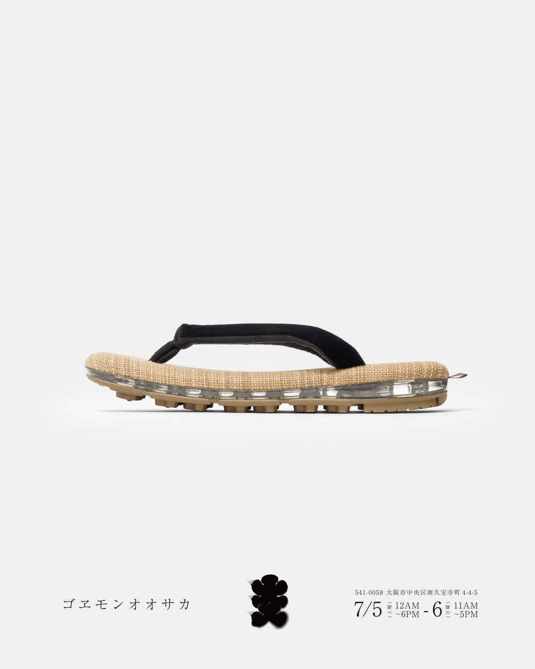 「goyemon」は2019年のブランド設立以降、日本の伝統的な履物である雪駄とスニーカーのエアユニットを融合させたプロダクト「unda-雲駄-」を軸に、世の中にない新たな履物を提案し続けてきました。その進化の中から生まれた最新モデル「TEGU(テグ)」は、伝統と革新の境界線をシームレスにする、ハイブリッドな雪駄スニーカー。2日間限定の本イベントにて2カラー展開で販売。以降の一般発売については現状未定となっております。