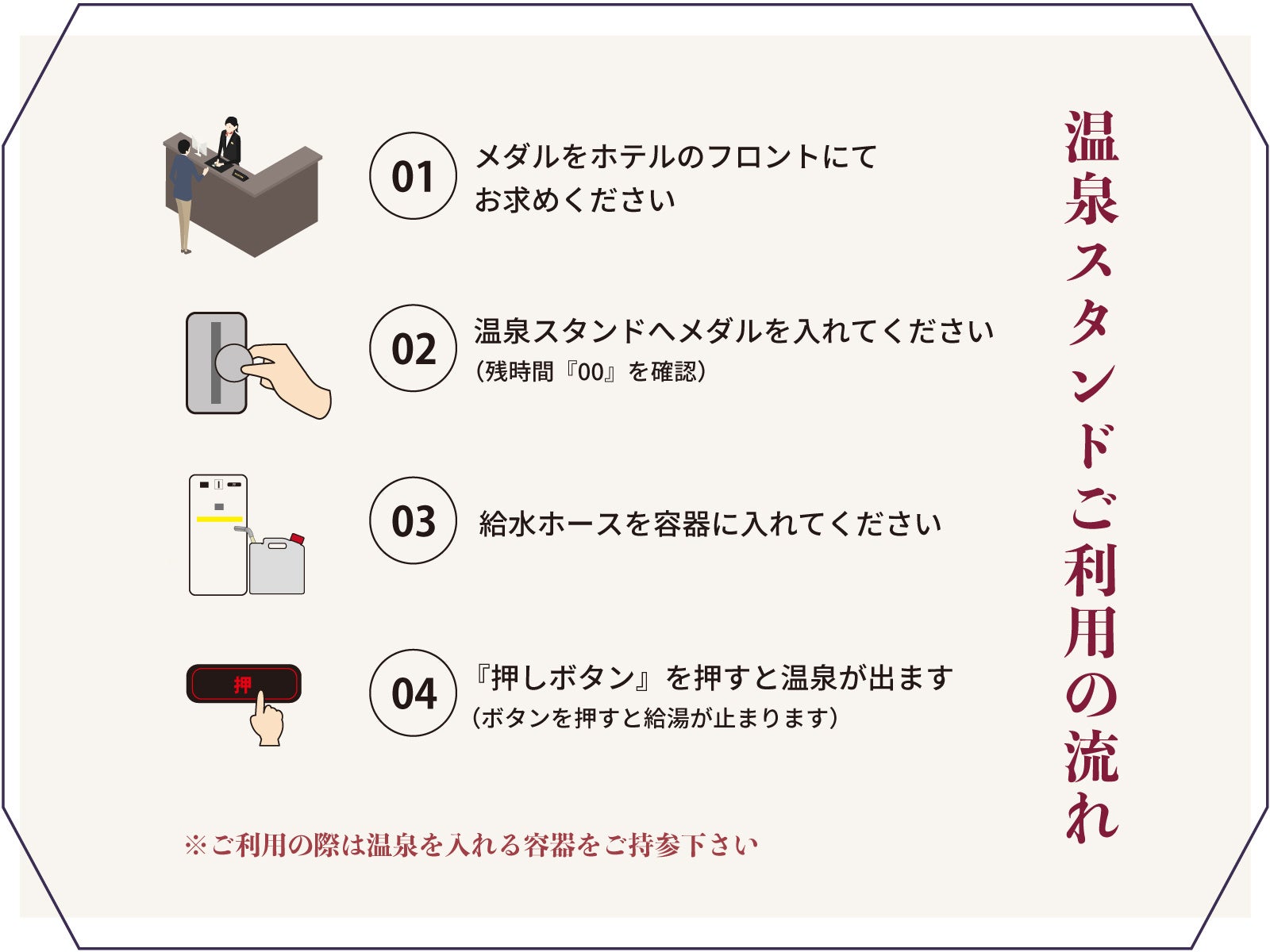※一般的な浴槽の場合、通常の8割程度のお湯に温泉水20 Lを加えると手軽に温泉気分が楽しめます。