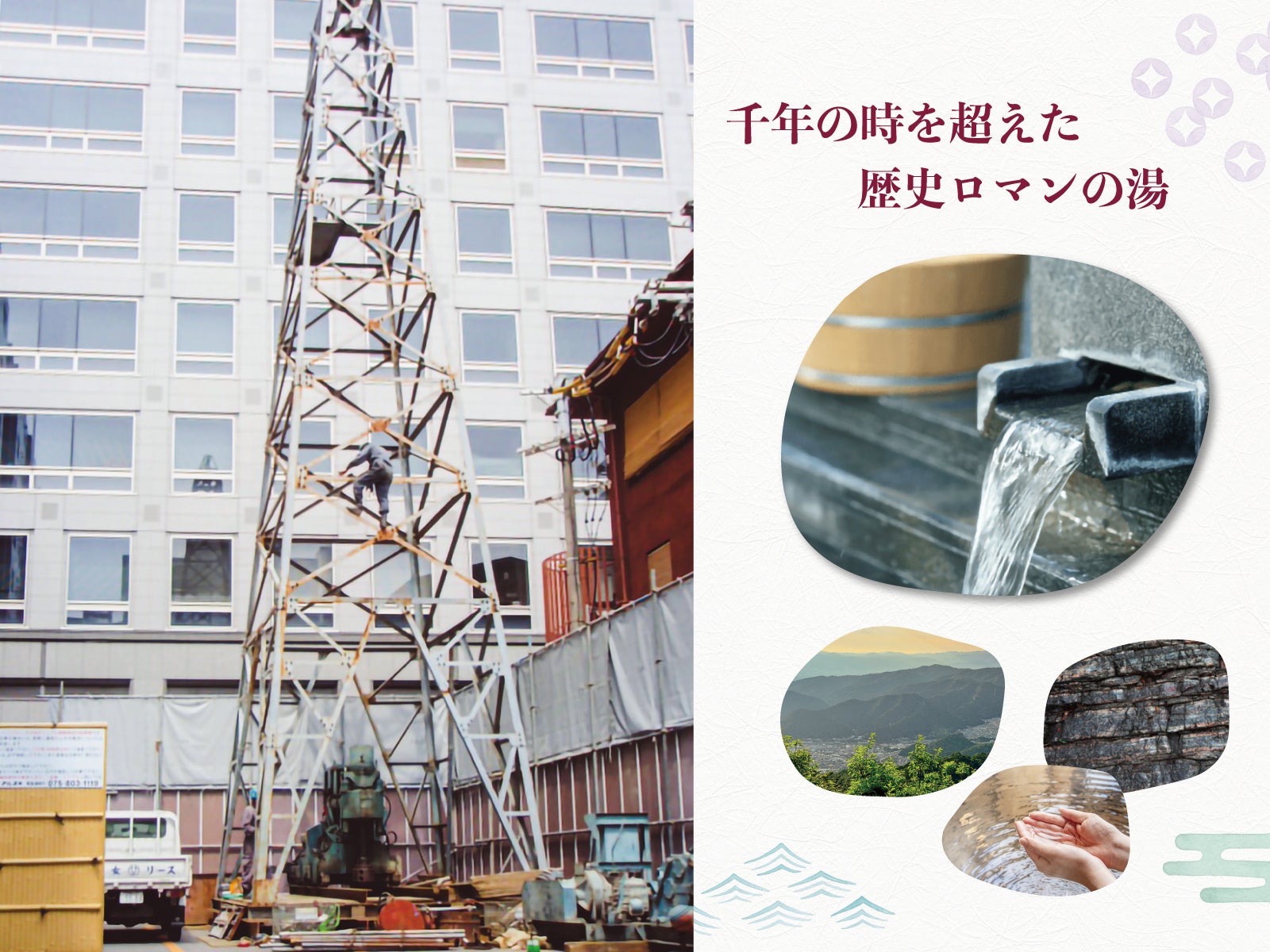 地下910メートルにある源泉は「丹波帯」という1億5千年前に形成された岩盤層の亀裂から採取しているため、古代のミネラルが多く含まれているのが特徴です。