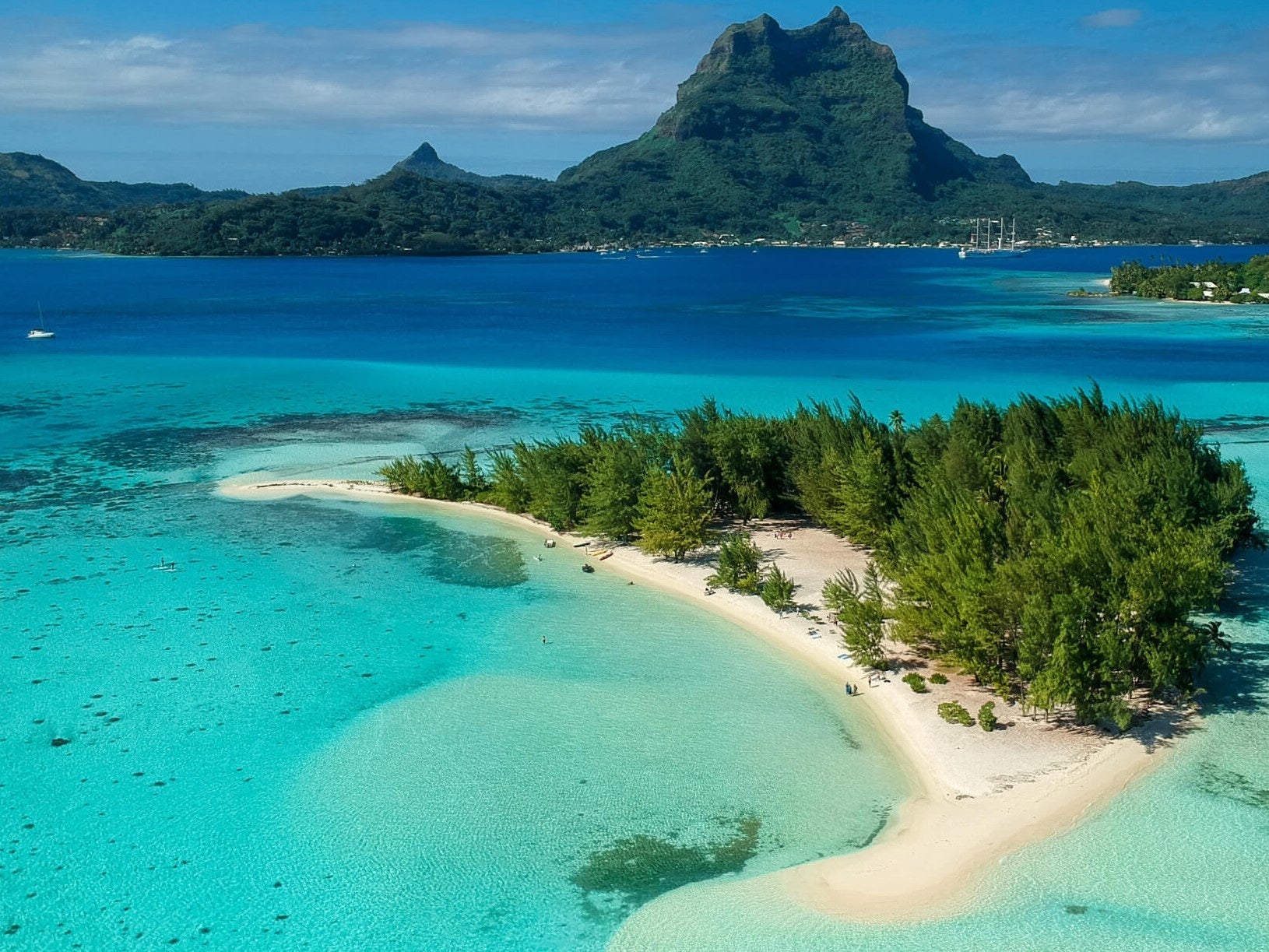 「太平洋の真珠」とも称され、島の中心にオテマヌ山がそびえるボラボラ島。タヒチが発祥といわれている水上バンガローで、ブルーラグーンの上をわたる心地よい風を感じながら過ごすひとときはまさに地上の楽園。クリスタルのように透き通った青い海を眺めながらのカヌーブレックファーストもおすすめです。