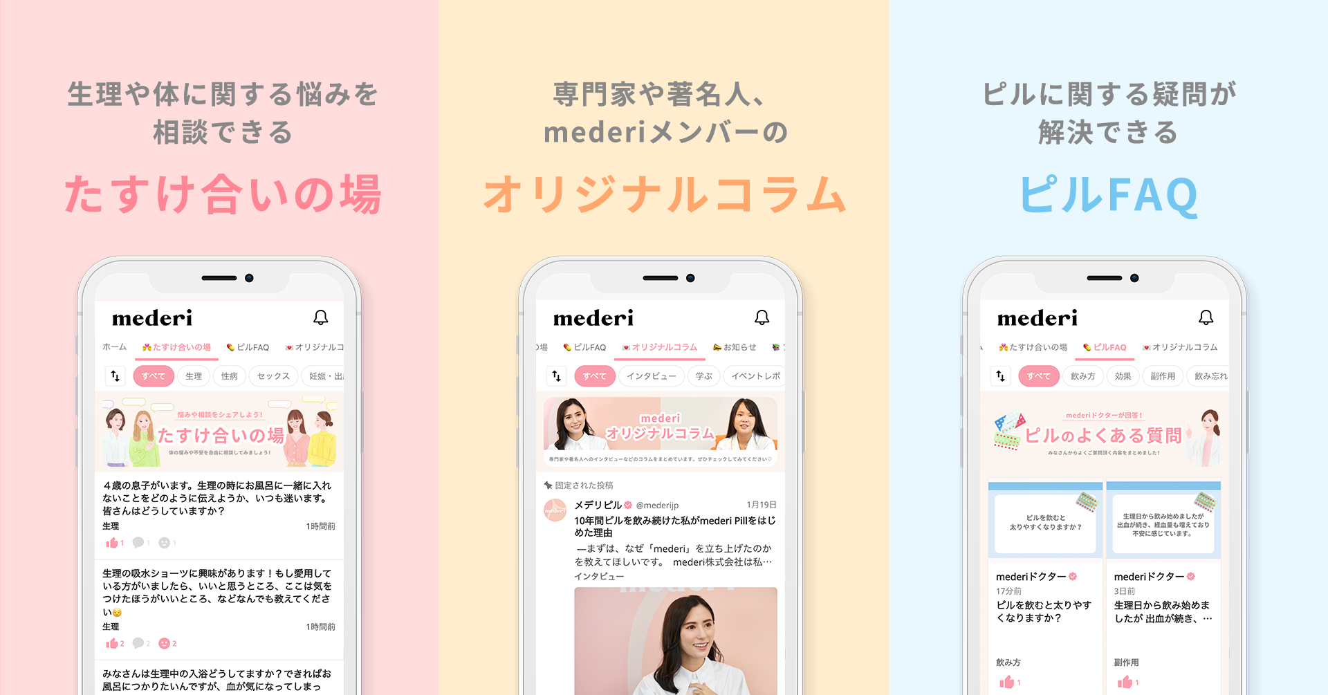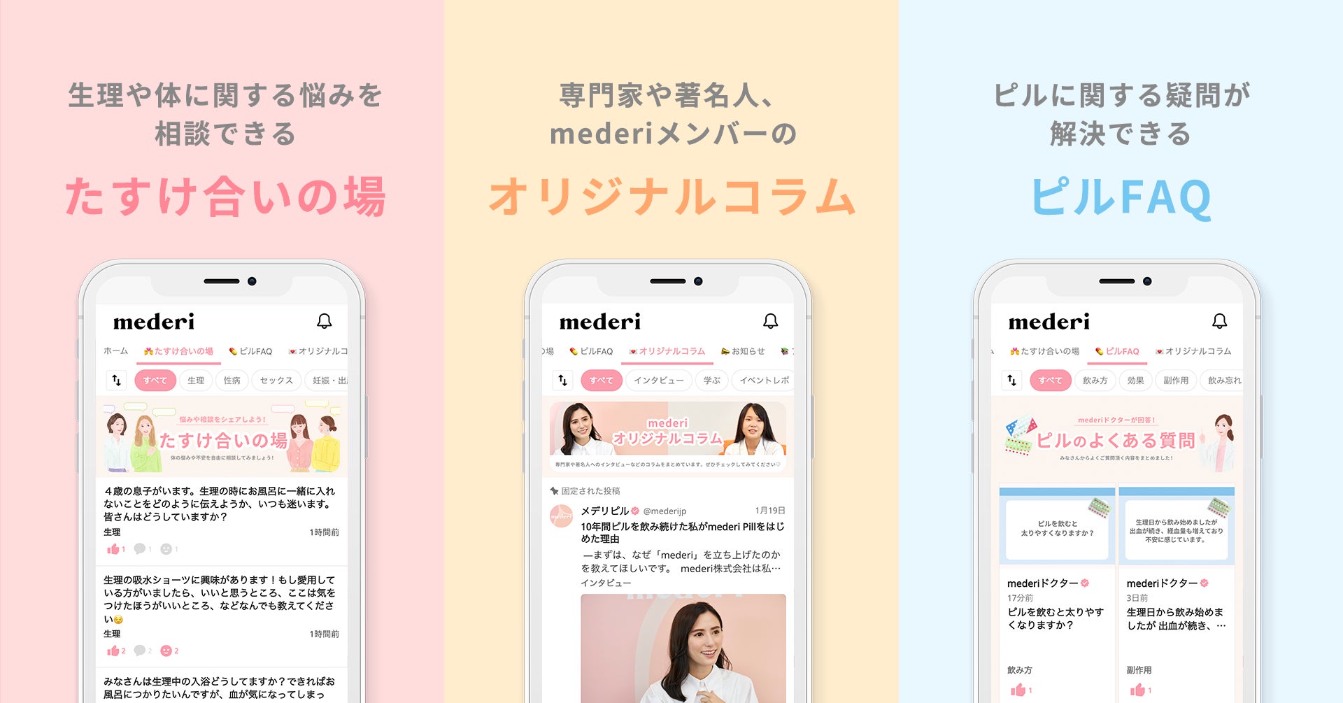 専門家や著名人、メデリメンバーオリジナルの限定コラムを発信。専門家の女性の体に対する知識や考え方を学ぶことができます。