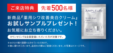 また、ご来場いただいた先着500名様に「薬用リンクルブライトクリーム(サンプルパウチ)」をプレゼントいたします。