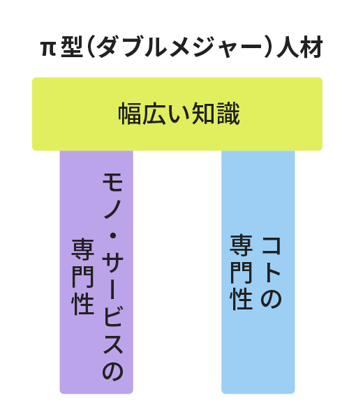(※)Π(パイ)型人材とは、2つ以上の専門知識を有する、知見豊富な人材。「ダブルメジャー」とも呼ばれます。ヤマハミュージックジャパン・ヤマハミュージックリテイリングでは、「モノ・サービス(自社の取り扱う商品やサービスの知識)」と「コト(営業・販売、マーケティングなど、事業展開を加速させる知識)」それぞれの専門性を追求する人材の育成を推進しています。
