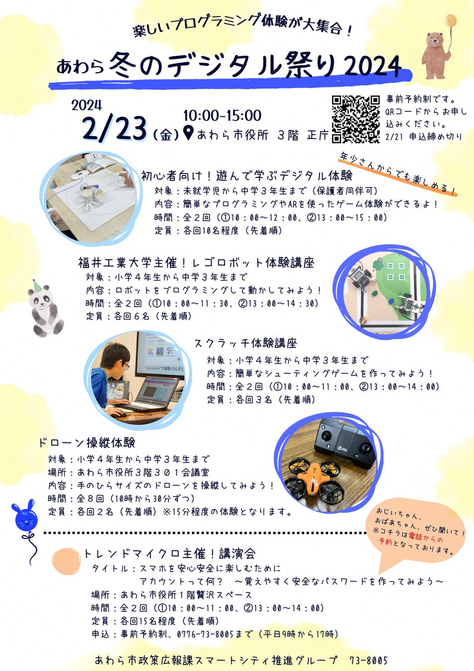 あわら市では、地域の子どもたちがプログラミングに触れる機会を増やすため、様々なツールを活用したプログラミングのイベントを企画しました。