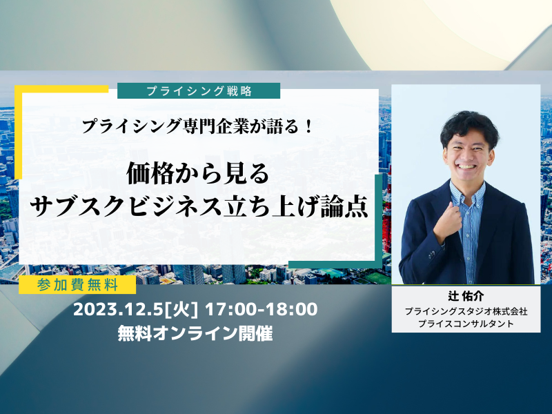 プライシングスタジオ株式会社|12月5日(火)17時~無料ウェビナー|価格から見るサブスクビジネス立ち上げ論点