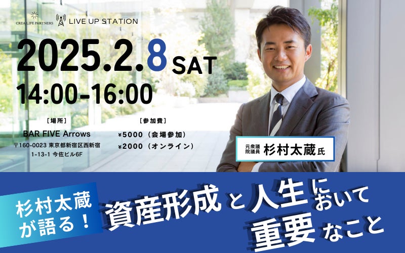 杉村太蔵氏が語る!「資産形成と人生において重要なこと」とは?特別セミナーを2月8日(土)BAR FIVE Arrows@西新宿と、オンライン@ZOOMでハイブリッド開催!!
