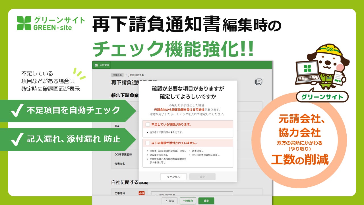 株式会社MCデータプラス(東京都渋⾕区、代表取締役社⻑︓飯田正生)は、建設業向け安全書類作成サービス「グリーンサイト」(https://www.kensetsu-site.com/series/greensite/ )において、グリーンファイル作成時の自動チェック機能を拡充しました。