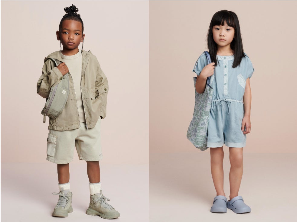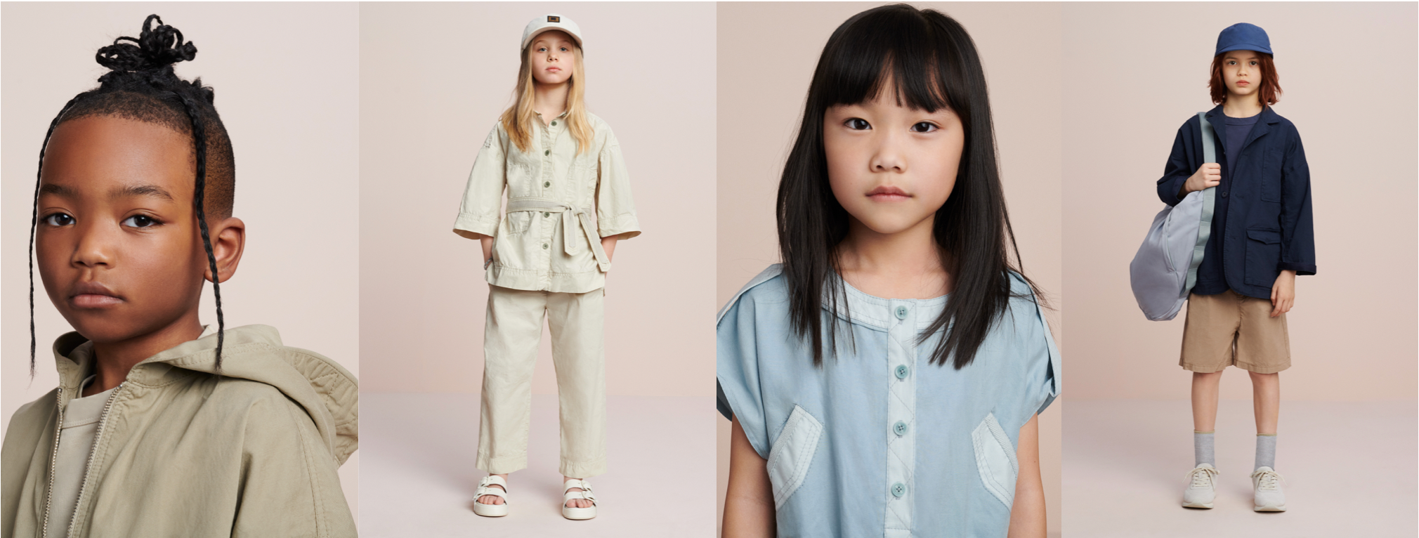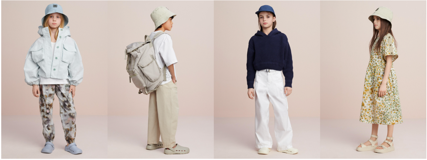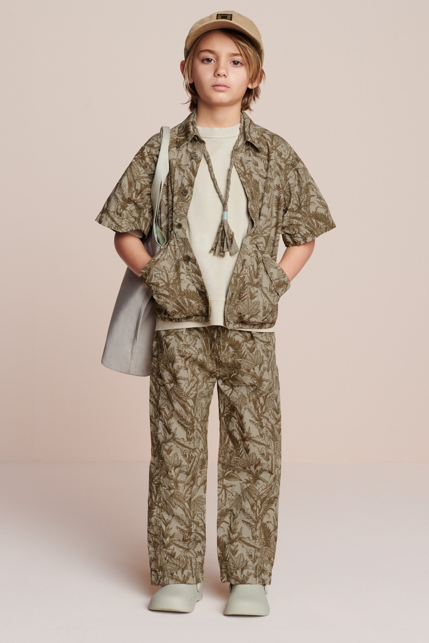 自己啓発的なスタイリングの哲学を、軽快でユーモラスなタッチで落とし込んだキッズコレクションでは、花柄やカモフラージュ、ボタニカル、アランニット、ブレトンストライプに加え、ワークウェアジャケットやカーゴパンツなど、公園から旅行先まであらゆるシーンで活躍する柄やアイテムが登場します。
