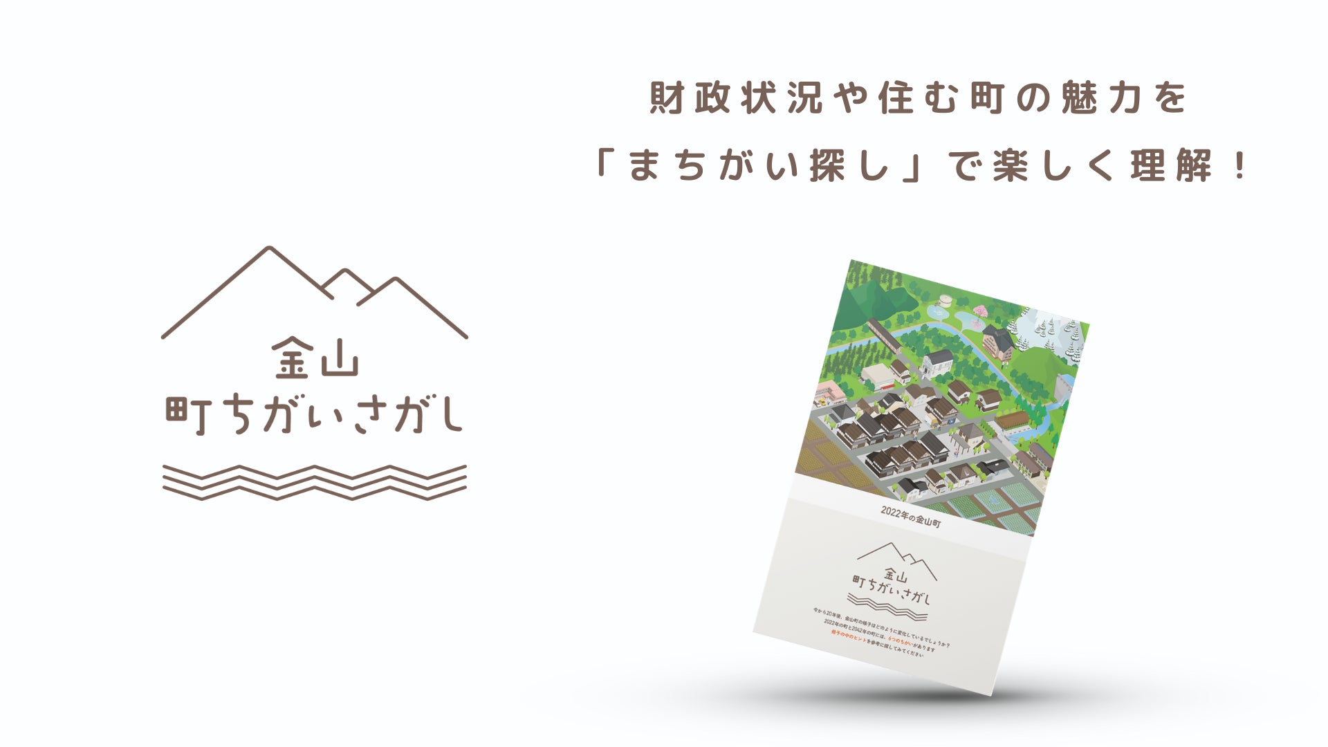 「まちがい探し」と「まち」を掛けて、自分たちが納める税金が、施策によってどのように変化するのかを、わかりやすくビジュアルで表現しました。『町ちがいさがし』は、金山町のホームページでデジタル版を、町役場で冊子版を公開しています。