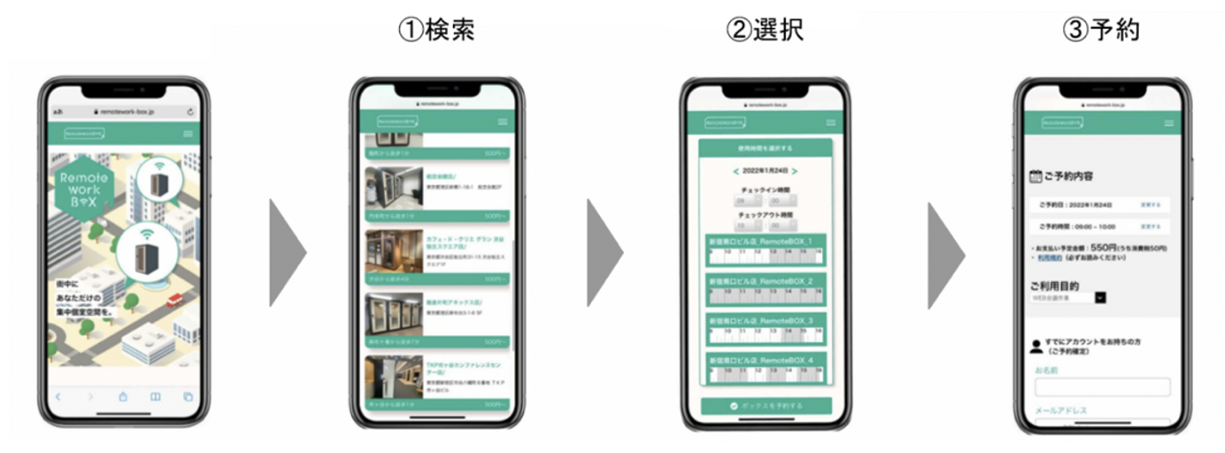 ②画面に従って検索→選択→予約の3ステップ(初回のみアカウント登録が必要となります)