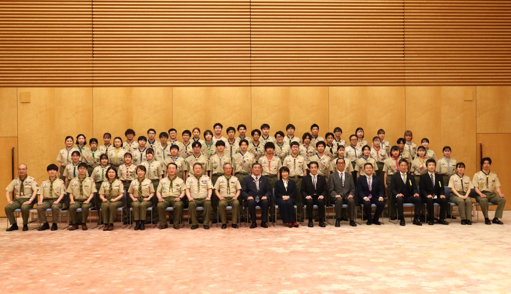 「スカウト活動で得た自分で課題を見つけて解決していく力や、仲間とともに協力して困難を乗り越えていく力は、変化の激しい社会を生きていくうえで、発揮されるものと思います。皆さんが、これから夢や希望に向かって大いにチャレンジし、社会を担うリーダーとして活躍することを心からご期待申し上げます」というお言葉をいただきました。