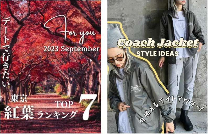 また、クリエイターから寄せられた豊富な投稿データは「投稿数」「閲覧数」「いいね数」「保存数」などの上昇傾向を元に分析し、テーマ・シーズン別に人気ランキングを発表しています。ランキングを見ることでトレンド情報をキャッチすることができます。