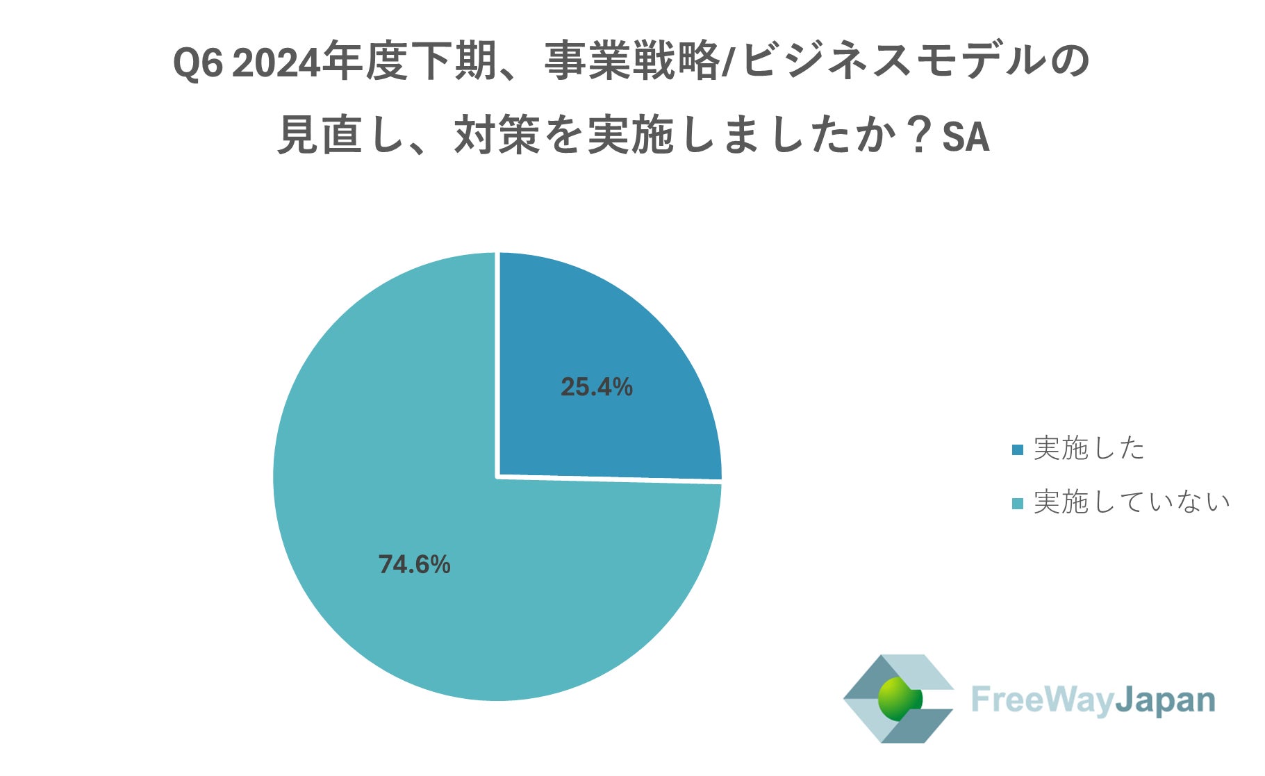 2024年度下期、事業戦略/ビジネスモデルの見直し、対策を実施したか聞いたところ、「実施していない」が74.6%、「実施した」が25.4%という結果だった。