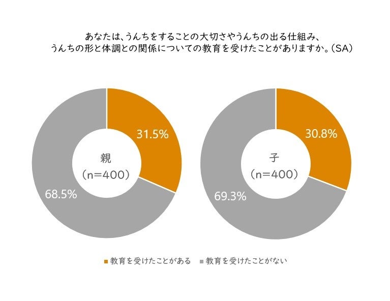 ・親も子も、約7割がうんちについての教育を受けたことがない