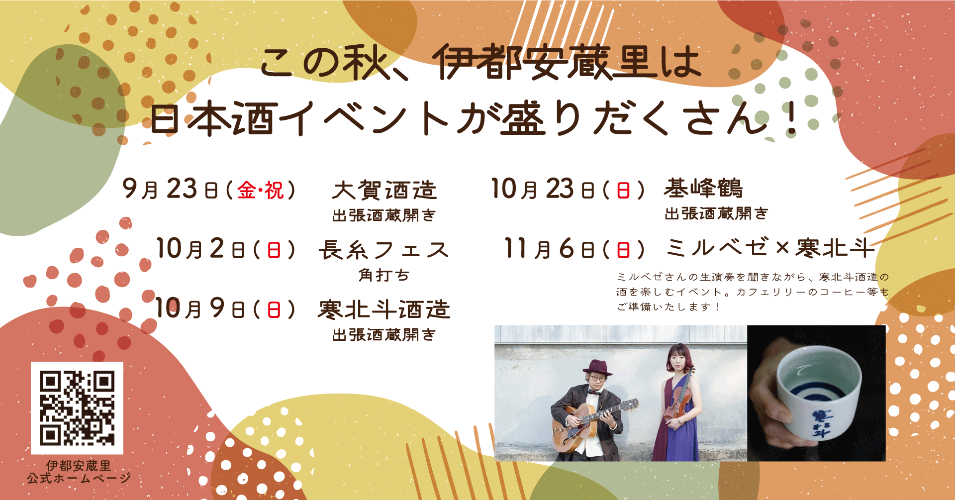 このたび、伊都安蔵里では、「寒北斗酒造」とのコラボイベントとして、秋夏限定の日本酒を存分に味わえる出張酒蔵開きを10/9(日)に開催いたします。