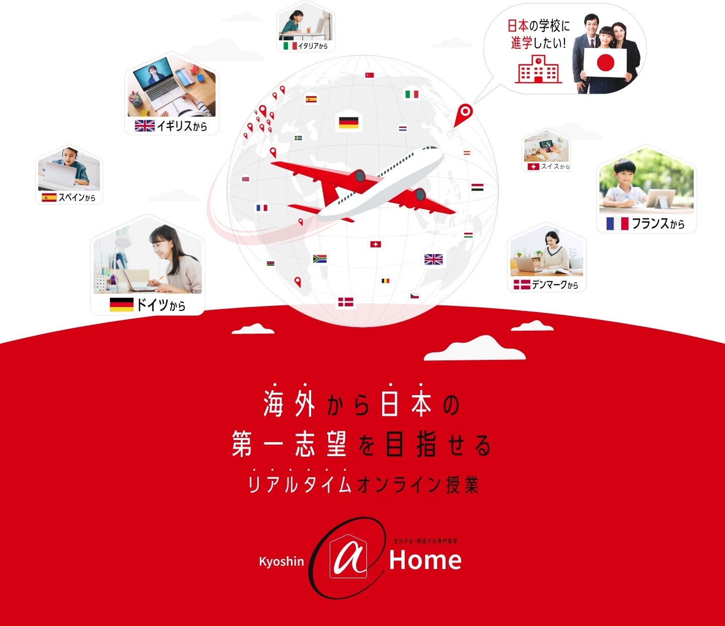 関西・愛知を中心に学習塾を展開する京進が、海外に駐在・在住の生徒、あるいは海外赴任の予定があるご家庭を主に対象としたサービス、リアルタイムオンライン授業「Kyoshin@Home」は、2021年8月のヨーロッパ・アフリカ対象エリアからスタートしました。その後アジア・オセアニア対象、今年2月からはアメリカ・南アメリカ対象にもエリアを拡大。日本での受験を目指すお子さまがいるご家庭を中心に、オンライン授業をご利用いただいています。
