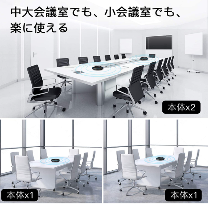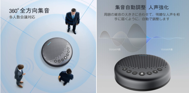 3つの高性能のマイクで360°全方位をカバーして、話し手がより明確にコミュニケーションをとります。また、オートゲインコントロール機能も付き、発言者の声を自動的に検知し、ある程度に音量を増幅し、発言内容がより明確的に伝えます。会議をより効率的に行うことができます 。