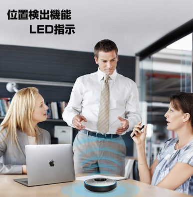 話している人の方向を自動的に検知して集音力を個別に高めクリアに集音してくれる「位置検出機能」を搭載。本体のLEDが光って検知している方向を一目で把握できます。また「オートゲインコントロール」機能により発言者の距離を自動的に検知、一定音量に増幅するので参加者の音声をクリアに拾い上げます。