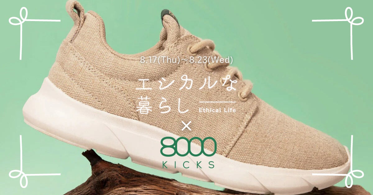 【8/17〜8/23】「エシカルな暮らし」にてヴィーガンスニーカーブランド『8000KICKS』コラボイベントを期間限定で開催