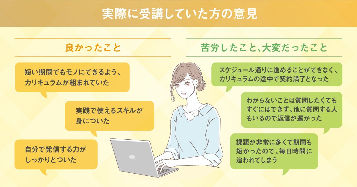 今回実際に受講していた方の意見も紹介しますので、スクール選びの参考にしてみてください。
