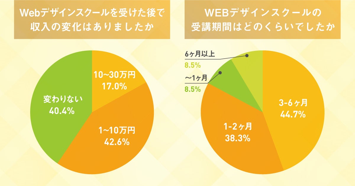 【WEBデザインスクールを受けた後で収入の変化はありましたか?また、受講期間はどのくらいでしたか?】