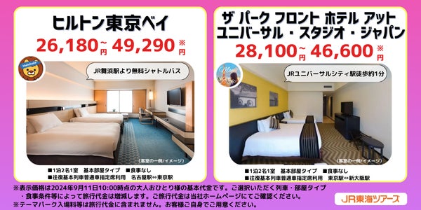 ※新幹線の乗車区間、出発時間、列車種別(のぞみ、ひかり、こだま等)、設備(普通車・グリーン車等)、部屋タイプ、食事条件等により、旅行代金は増額または減額となる場合があります。