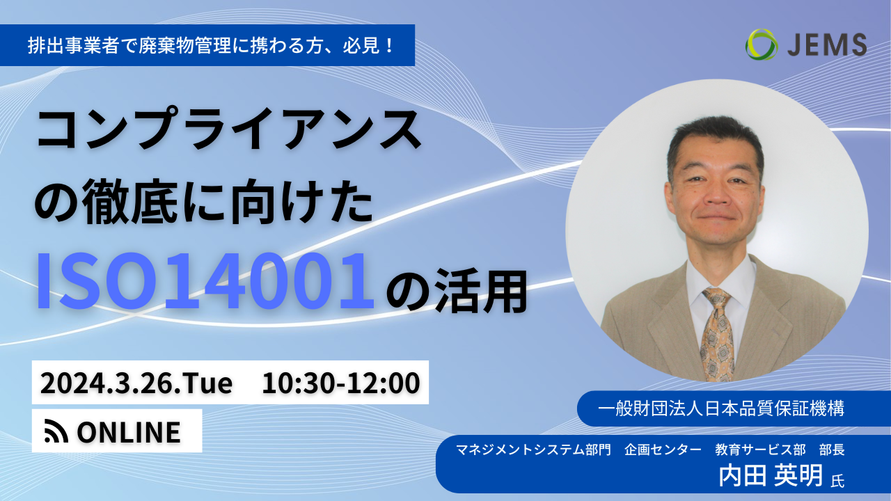 【3/26(火)開催】コンプライアンスの徹底に向けたISO14001の活用(無料オンラインセミナー)
