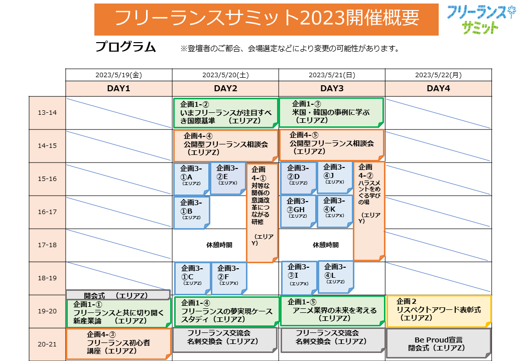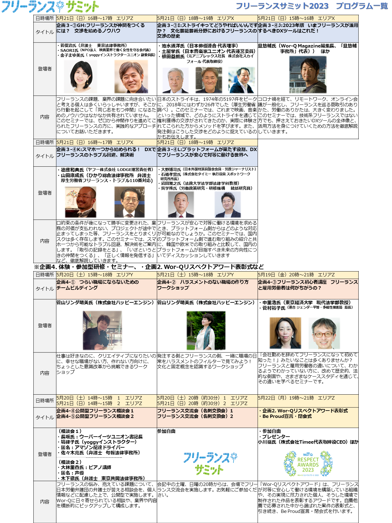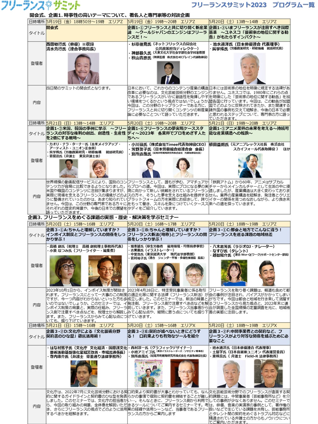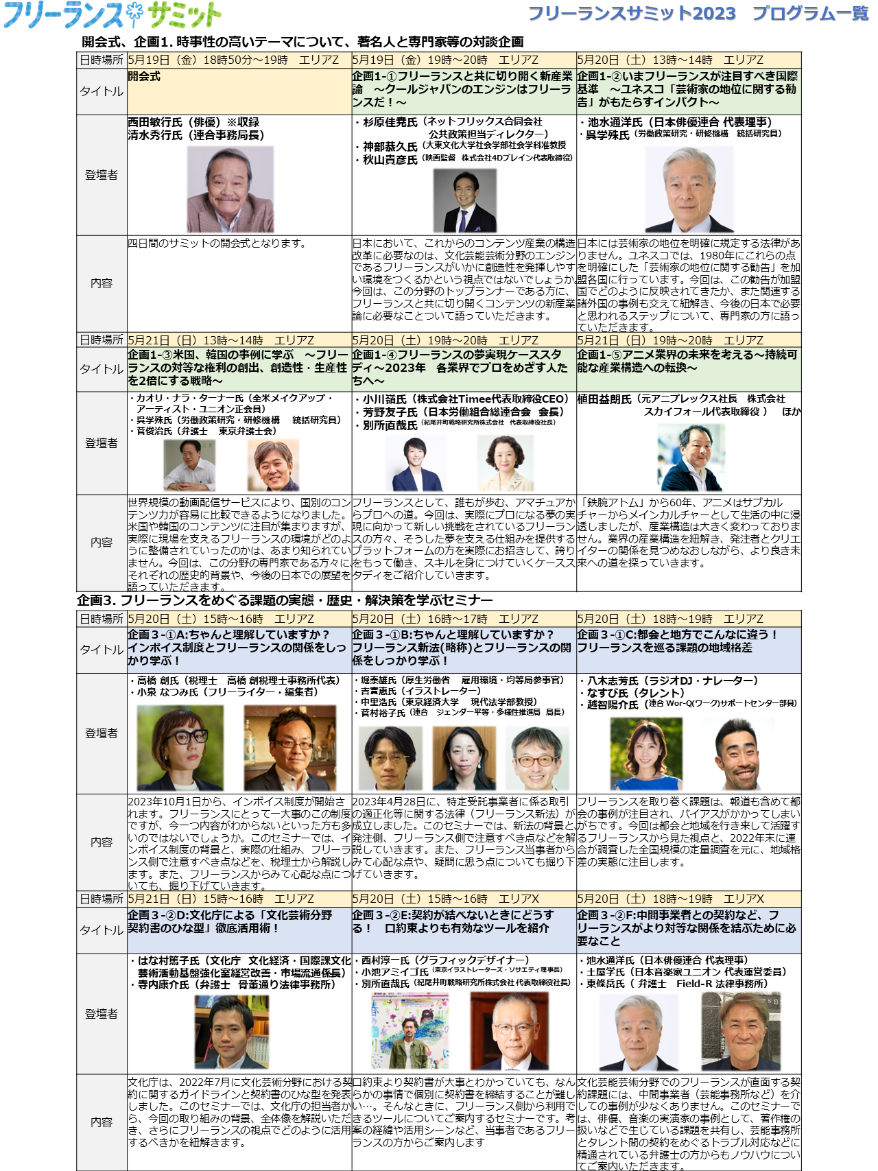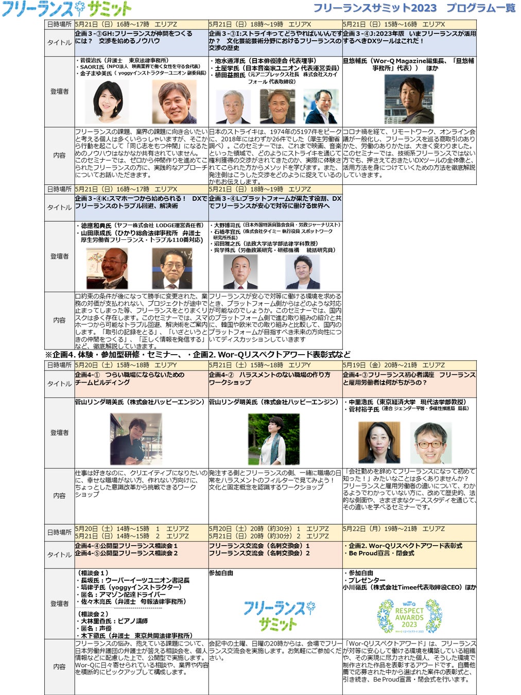 日程 :「フリーランス全国サミット」2023年5月19日(金)~ 5月22日(月)
