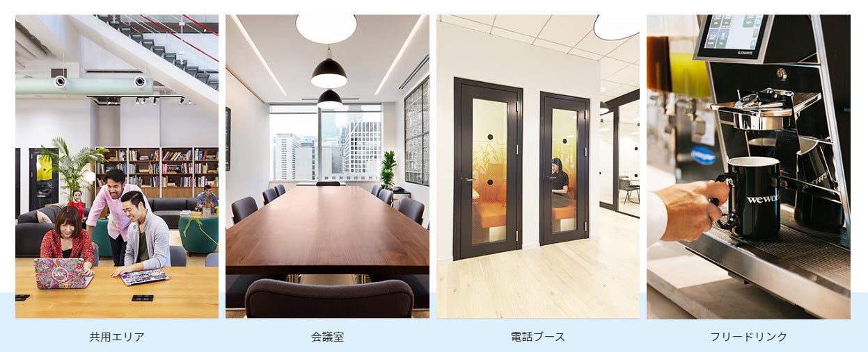 | 利用可能範囲 | 共用エリア(ラウンジ、ホットデスク、電話フォンブース)・フリードリンク・会議室 |