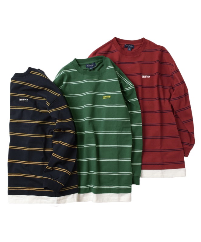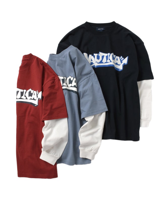 - 【NAUTICA】グラフィック袖レイヤードTシャツ