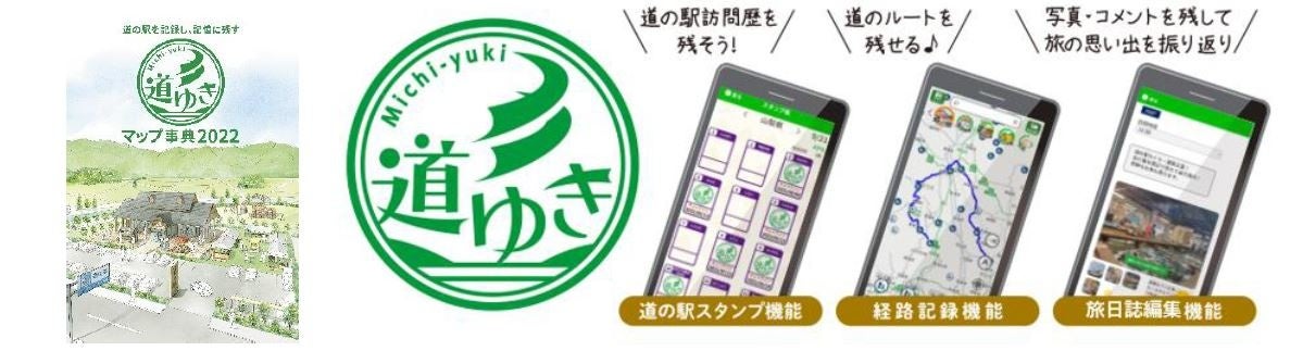「道ゆき」は、道の駅めぐりの足跡を残すための、道の駅ファンの皆様に向けた会員制のサービスです。書籍「マップ事典」・ナビアプリ・WEBサービスを通し、旅前から旅後まで「道の駅めぐり」を楽しめます。特長として、道の駅の訪問記録をデジタルスタンプ機能や経路記録機能、写真やコメントなどで記す旅日誌編集機能など、多様なスタイルで残すことができます。これらは、ユーザー間での共有が可能なため、会員のみなさんの訪問記録を通して、自分が知らなかった“道の駅の新たな一面”を知ることもできます。