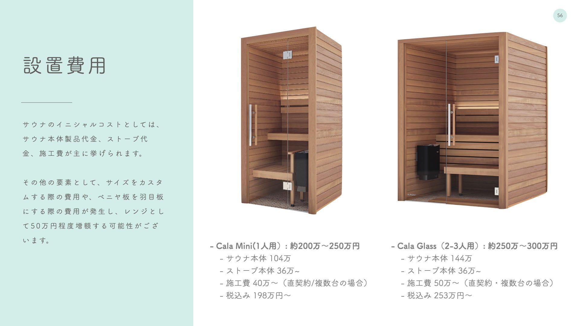 では、サウナを設置する際の初期コストと、サウナを維持する際のランニングコストはどのくらいかかるものなのでしょうか。