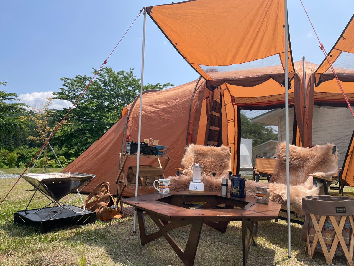 2023年6月~10月の期間限定でオープンしたレンタルテントサイト。蔵王連峰からテントの名前は「King」と名付けられました。「Snow Peakの焚き火台」や「ノルディスクのレイサ6」など、一度は使ってみたい憧れのキャンプギアを実際にご覧いただけます。