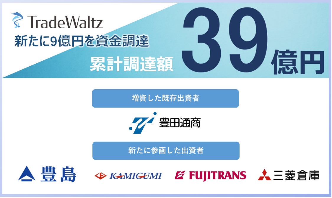 NTTデータや豊田通商、三菱商事等が共同出資し貿易プラットフォームを運営する「トレードワルツ」が9億円の追加資金調達を実施。資金調達累計は39億円に到達。