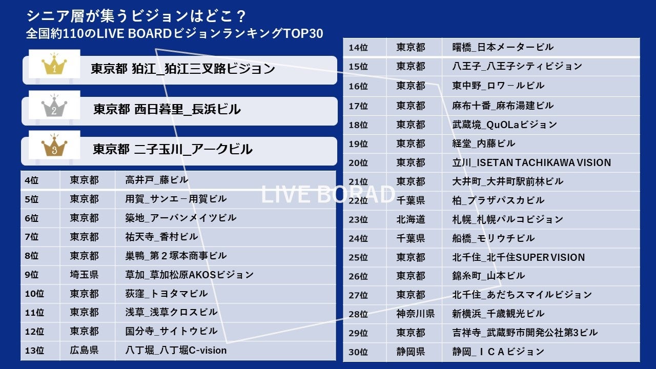“シニア層”が集うビジョンはどこ? 全国のLIVE BOARD屋外ビジョンランキングTOP30を発表