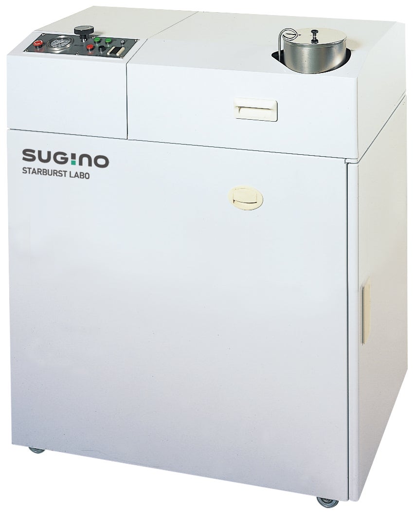 超高圧に加圧した水流と原料同士を超高速(マッハ4の相対速度)で衝突させることで、微粒化(分散・乳化・粉砕・へき開※2等)を行う、湿式微粒化装置です。