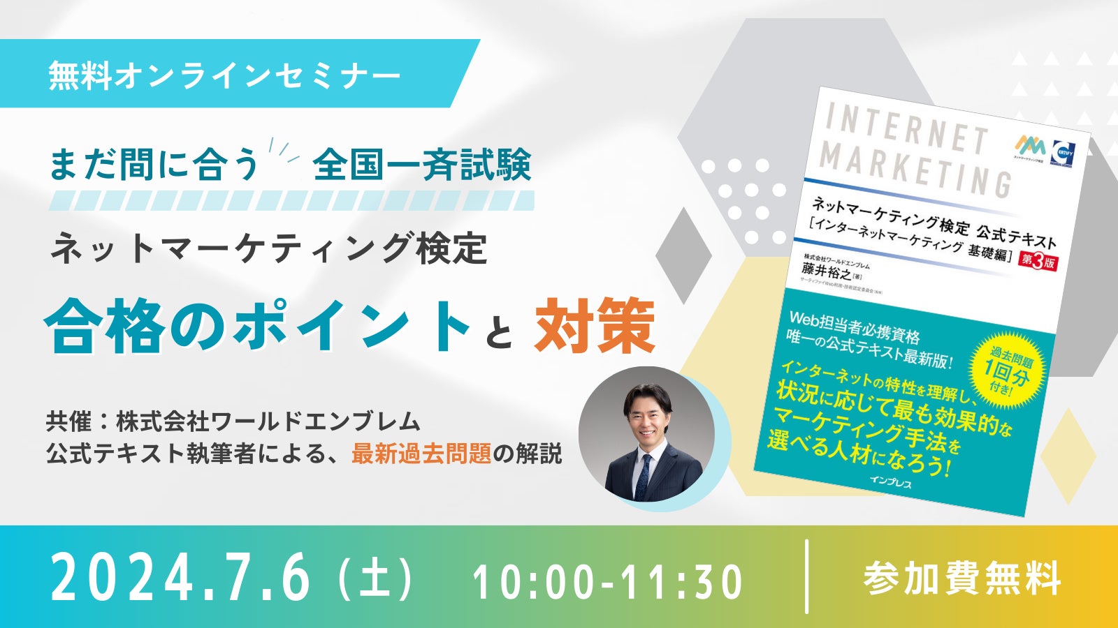 ネットマーケティング検定「合格のポイントと対策」ウェビナー (共催:ワールドエンブレム)7月6日(土)開催