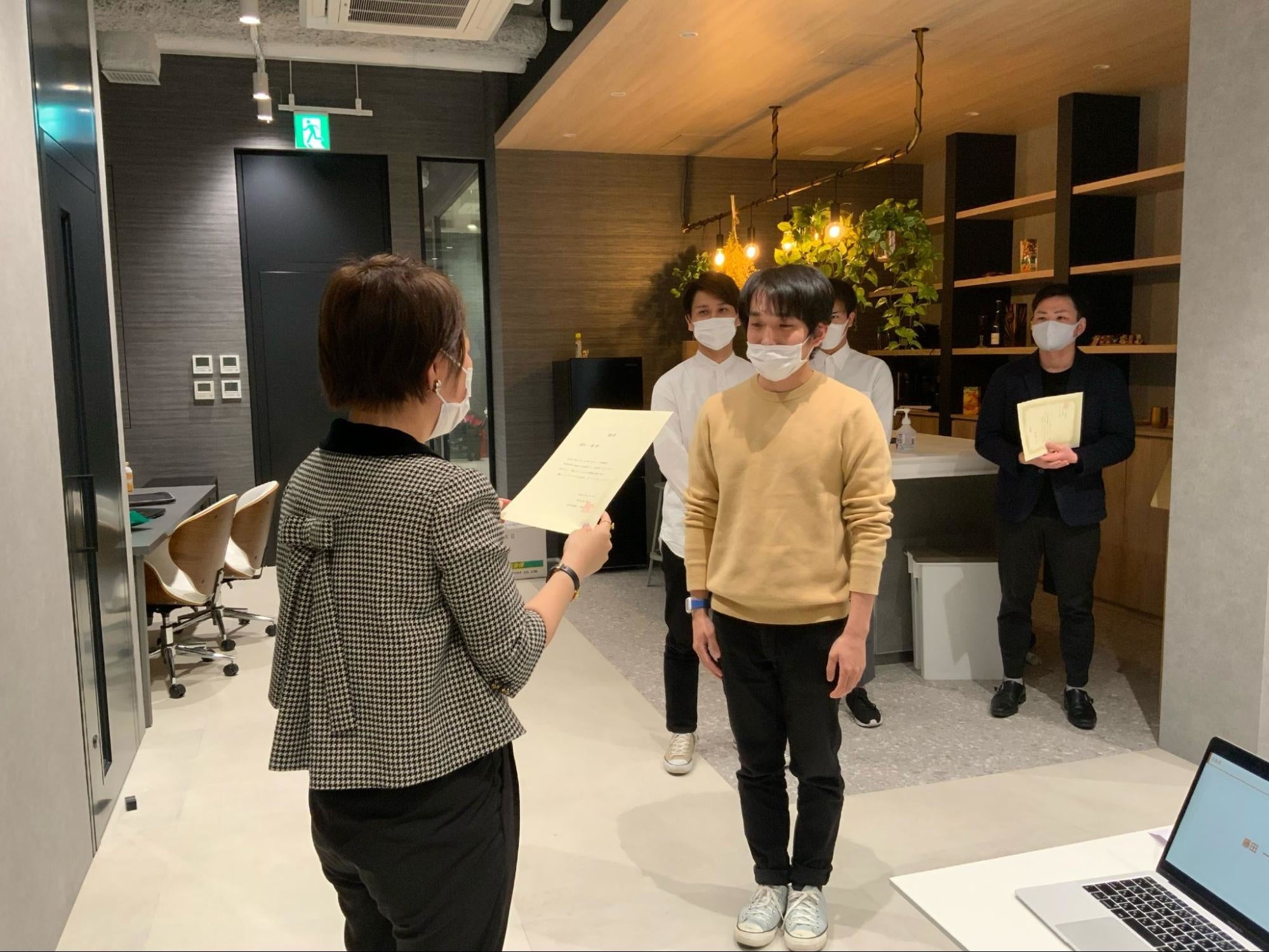また、新入社員の辞令書授与式と合わせて、昇格人材の辞令書授与式も行いました。