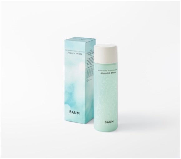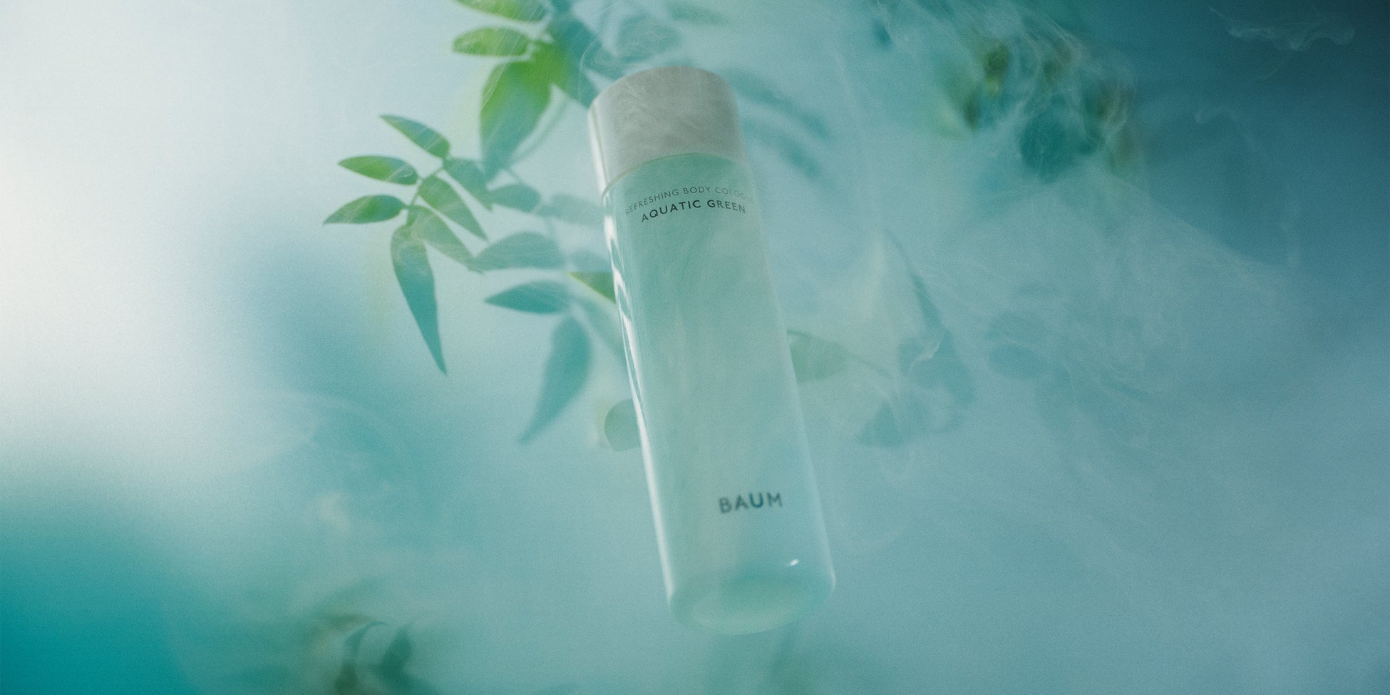 躍動感のある渓流と新緑の森を感じる、フレッシュな香りのボディフレグランス「バウム リフレッシング ボディコロン アクアティック グリーン」は、高温多湿な季節に一瞬で爽快感を感じさせる、グリーンノートと、クリアなアクアノートが、すっきりとした清涼感をもたらすと同時に、みずみずしいテクスチャーが肌へと広がり、心地よいひんやり感と、さらさらの肌が続きます。