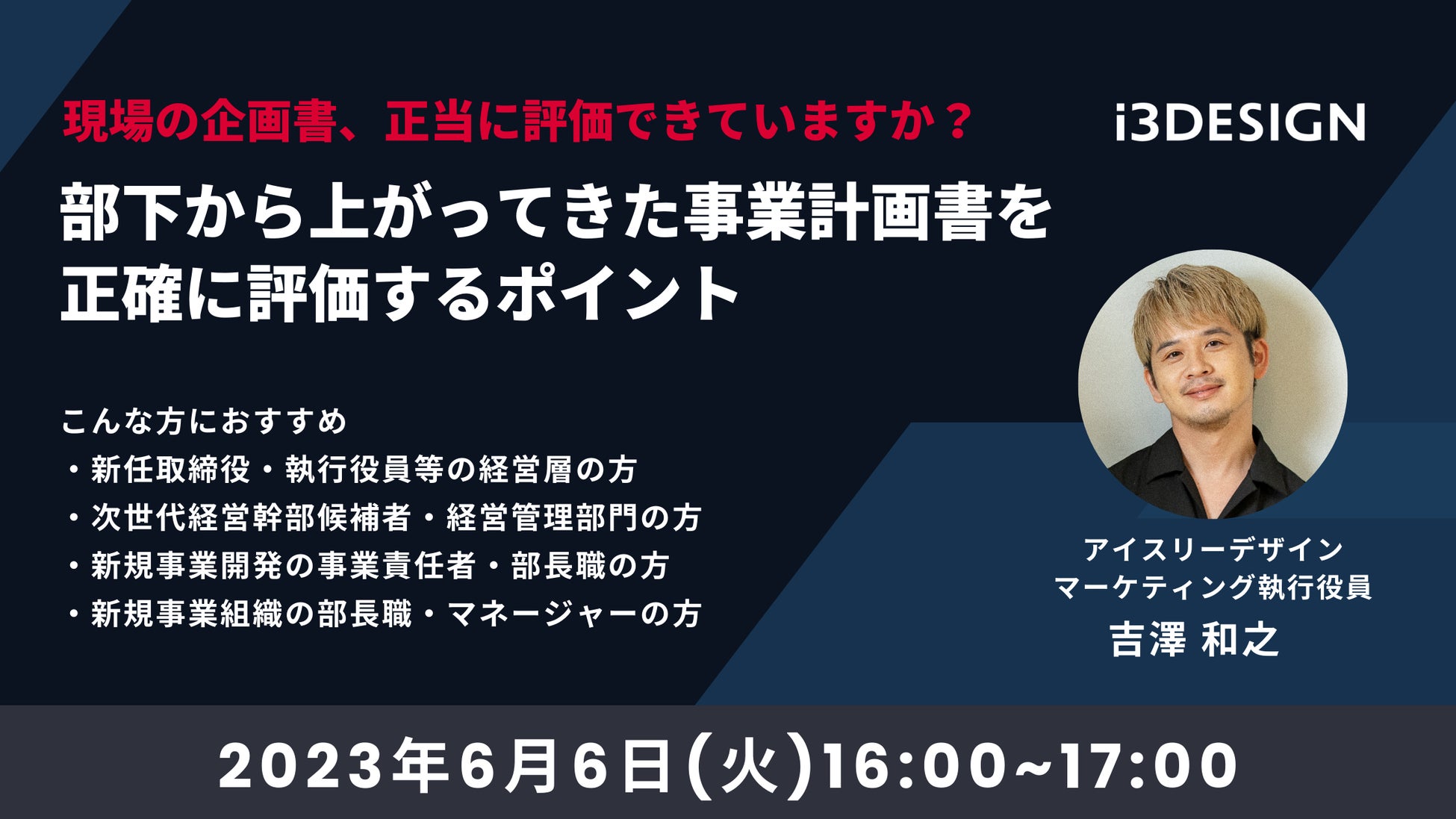【6月6日(火)16時開催】「現場の企画書、正当に評価できていますか?部下から上がってきた事業計画書を正確に評価するポイント」をテーマにオンラインセミナーを開催