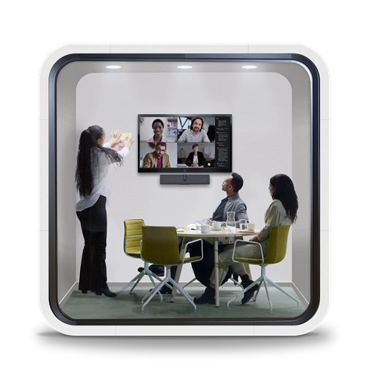 インテリジェントミーティングスペースにより、オープンスペースのオフィスや、ガラス張りの会議範囲(映像)が可能