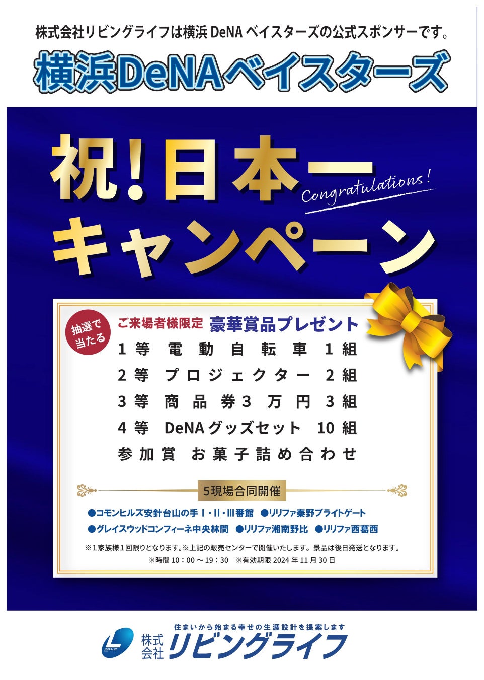 【株式会社リビングライフ】横浜DeNAベイスターズ祝!日本一キャンペーン開催!