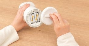 電池で動くコードレス仕様。いつでもどこでもアルカリ単4電池4本で約2,800回使用可能です。