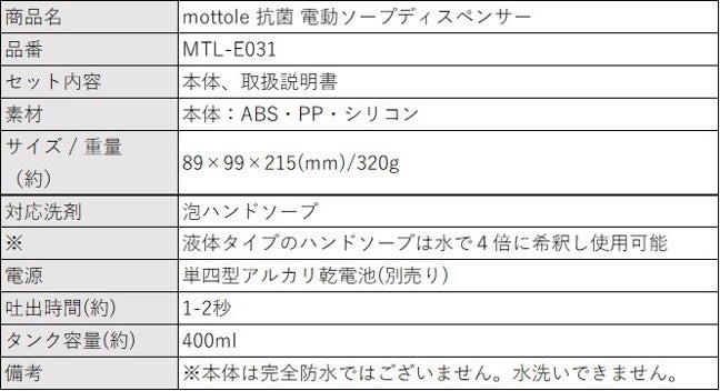 シンプルでありながら、従来の商品にはない機能性アイテムを多数取り揃えるブランド“mottole(モットル)”を展開するライフオンプロダクツ株式会社(本社:大阪府大阪市)から、“mottole 抗菌電動ソープディスペンサー”を2022年1月7日(金)より販売開始いたしました。