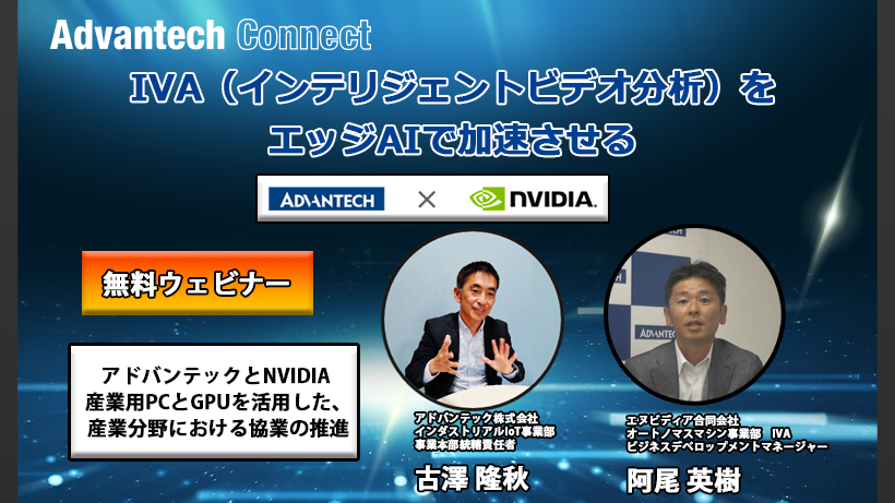 アドバンテック株式会社(Advantech Co., Ltd. 本社:台湾台北市/日本法人:東京都台東区、 以下 アドバンテック)は、2022年6月22日(水)、IVA(インテリジェントビデオ分析)をテーマに、NVIDIAからのスピーカーが登場するウェビナー「Advantech Connect」の第三弾を配信させて頂きます。
