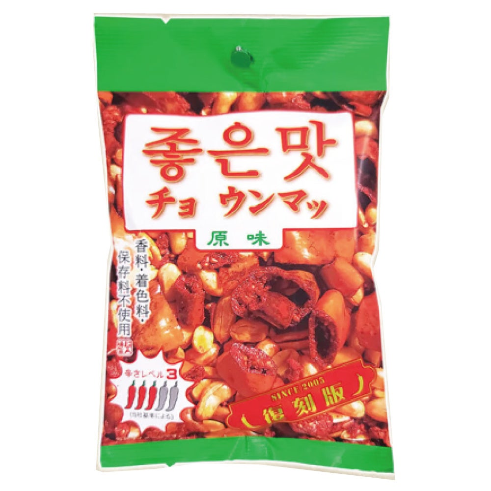 「チョ ウンマッ」は株式会社アジル(東京都大田区)が開発した大ぶりな唐辛子のぶつ切りを手揚げした新感覚スナックです。言葉の意味は韓国語で「旨い」で、日本語の「超うまい」とかかっています。辛そうなイメージがありますが、辛味は控えめで唐辛子の本来の旨味を楽しめます。2005年の発売以来シリーズ累計250万袋の販売実績があり、多くのファンから愛されている商品です。