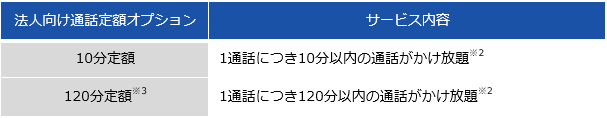 当社は、MVNO事業者へNTTドコモ・ソフトバンク・au回線の各キャリアでの「10分定額」、「120分定額」の2つの法人向け通話定額オプション※1を提供します。